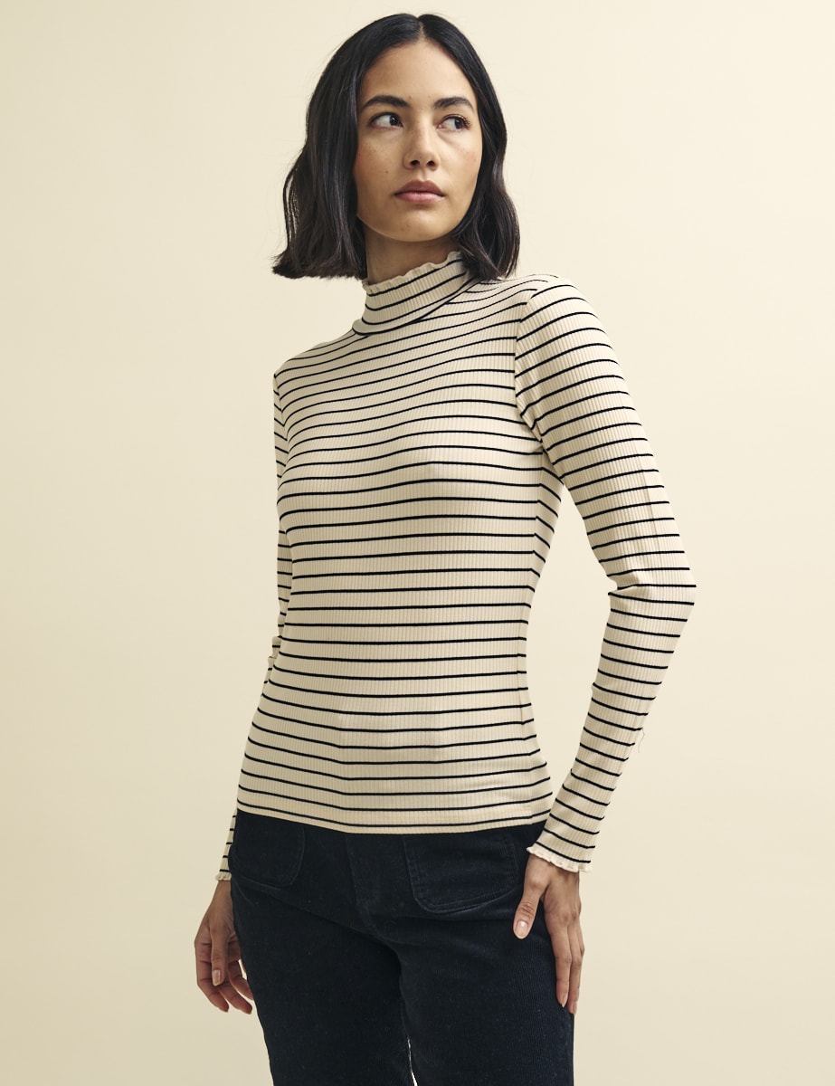 Black and Cream Stripe Funnel Neck Lizzie Top