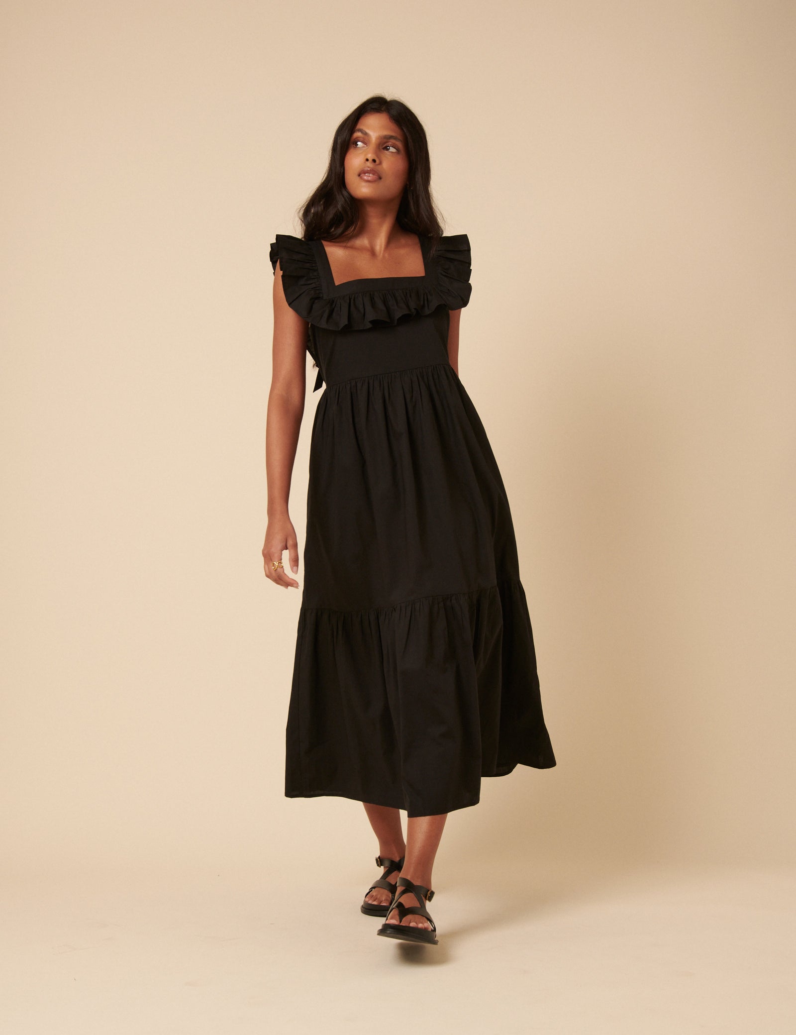 Square neck  Frilled lettuce hem    Panelled waist designed to flatter  Open back with tie detail...