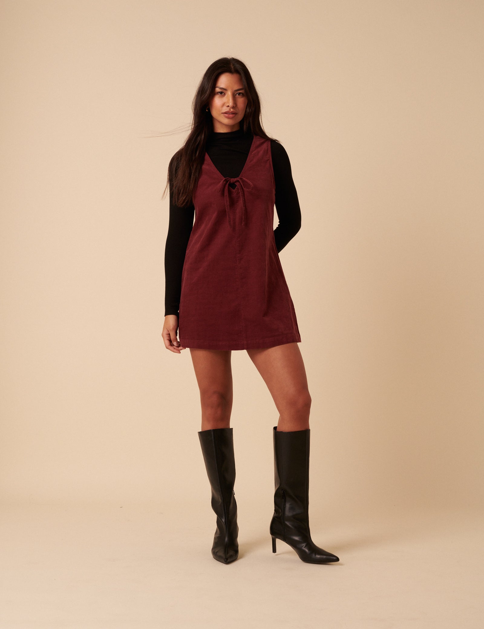 • Petite Burgundy Nila Pinafore Mini Dress
