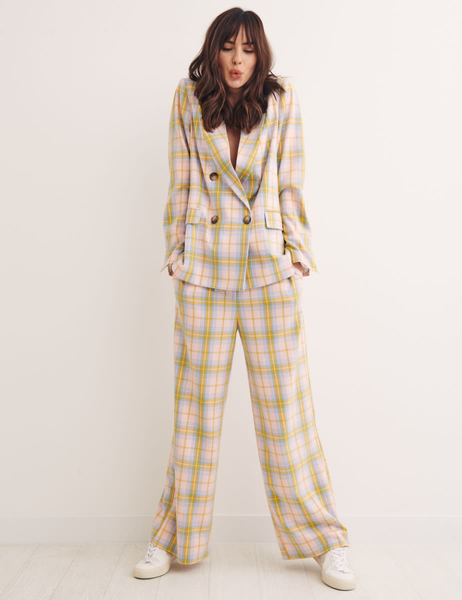 This Beth suit blazer lays the foundation for endless looks. Featuring a clean silhouette and a double-breasted design, with a timeless tartan print. Complete with pockets on the side, it looks especially chic when paired with the matching trousers.